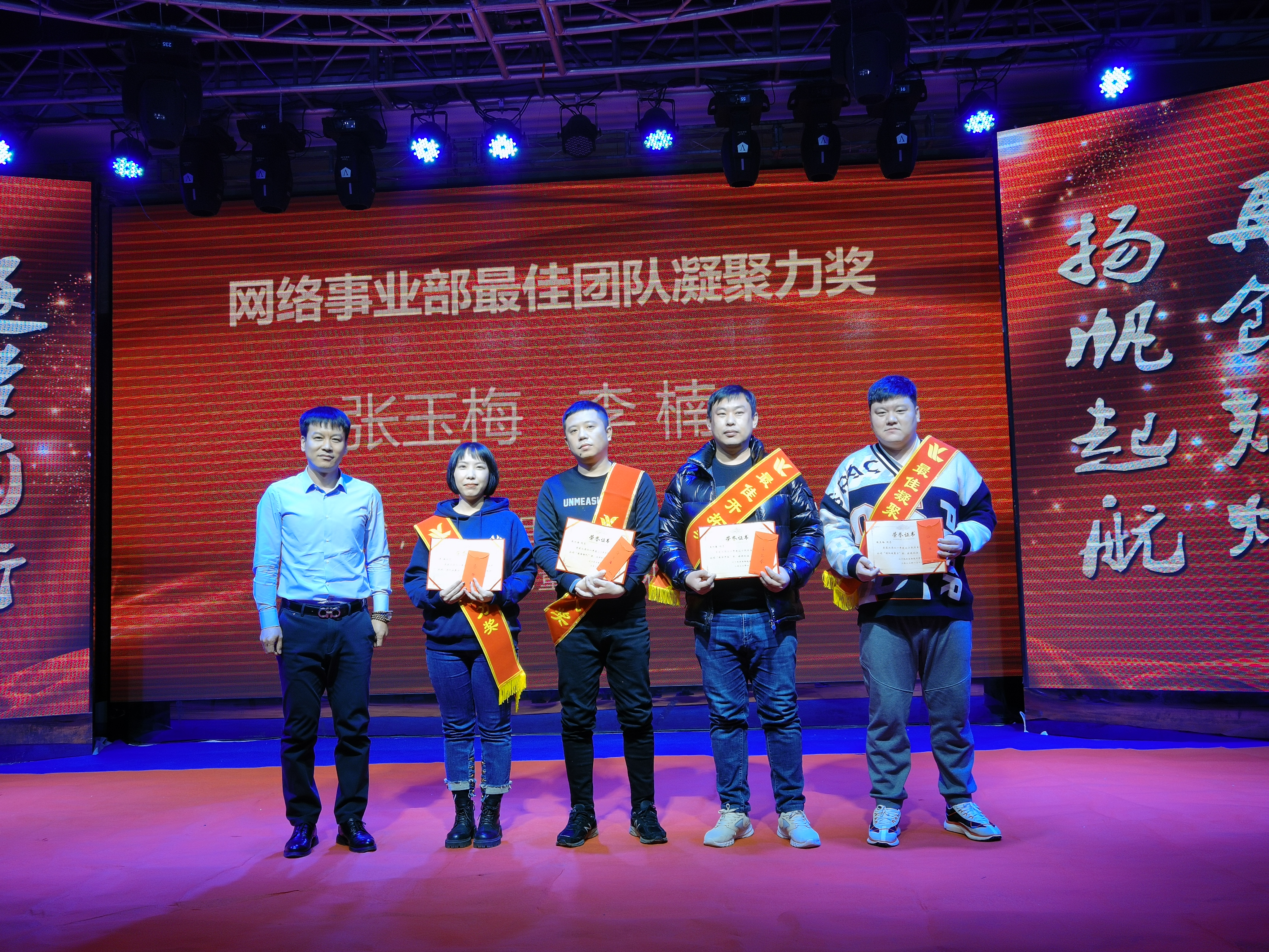 王爾春獲得網(wǎng)絡(luò)事業(yè)部最佳開拓獎;張興海獲得網(wǎng)絡(luò)事業(yè)部最佳新人獎;張玉梅、李楠獲得網(wǎng)絡(luò)事業(yè)部最佳團隊凝聚力獎。公司網(wǎng)絡(luò)事業(yè)部總經(jīng)理趙福寬為獲獎?wù)?/span>頒獎。